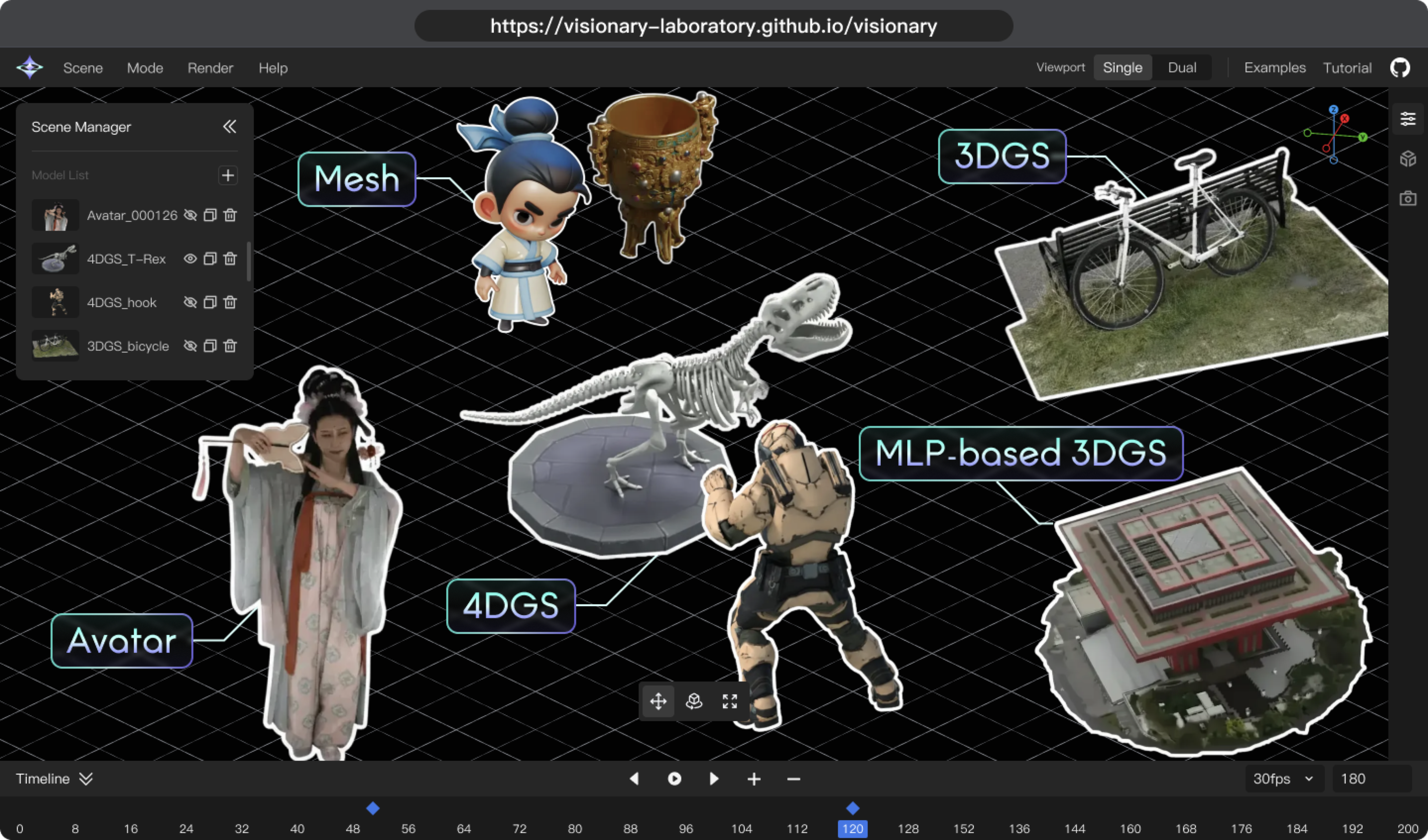 | Visionary: The World Model Carrier Built on WebGPU-Powered Gaussian Splatting Platform Yuning Gong, Yifei Liu, Yifan Zhan, Muyao Niu, Xueying Li, Yuanjun Liao, Jiaming Chen, Yuanyuan Gao, Jiaqi Chen, Minming Chen, Li Zhou, Yuning Zhang, Wei Wang, Xiaoqing Hou, Huaxi Huang, Shixiang Tang, Le Ma, Dingwen Zhang, Xue Yang, Junchi Yan, Yanchi Zhang, Yinqiang Zheng, Xiao Sun, Zhihang Zhong† arXiv, 2025 project / arXiv / code / editor |